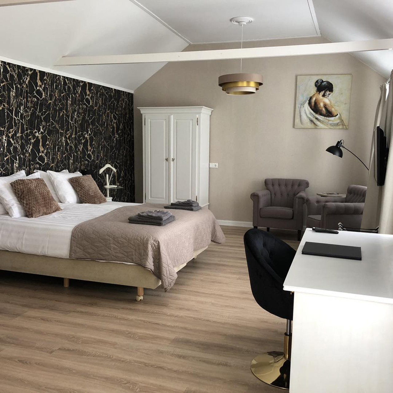 Na een onvergetelijke dag genieten jullie van een heerlijke overnachting bij B&B Meester – Van Kampen. Het bruidspaar verblijft in één van onze luxe kamers, elk met zorg ingericht in een verfijnde hotel sjiek stijl. De ruime kamers van circa 35 m² beschikken over een comfortabel tweepersoonsbed, een eigen badkamer met toilet en een gezellig zitgedeelte. Hier komen rust, privacy en comfort samen – de perfecte afsluiting van jullie trouwdag.