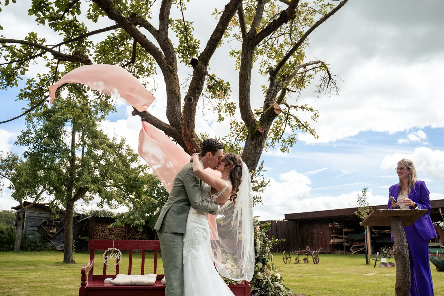 Marijke heeft voor ons de rol als trouwambtenaar en ceremoniemeester verzorgd. Onze input en de verhalen van de getuigen zijn verwerkt in een speech die perfect bij ons past! Super opgebouwd en een plezier om naar te luisteren. Daarna is Marijke gebleven om ons de rest van de dag te ontzorgen in de rol als ceremoniemeester. En wat heeft ze dat goed gedaan! We hebben geen moment de neiging gehad om iets te doen of vast te pakken. Marijke heeft ons volledig ontzorgd, ook beslissingen op de dag zelf heeft ze volledig over genomen. We zijn alleen gestoord wanneer dat nodig was. We hebben genoten, mede dankzij de inspanningen van deze topper!!