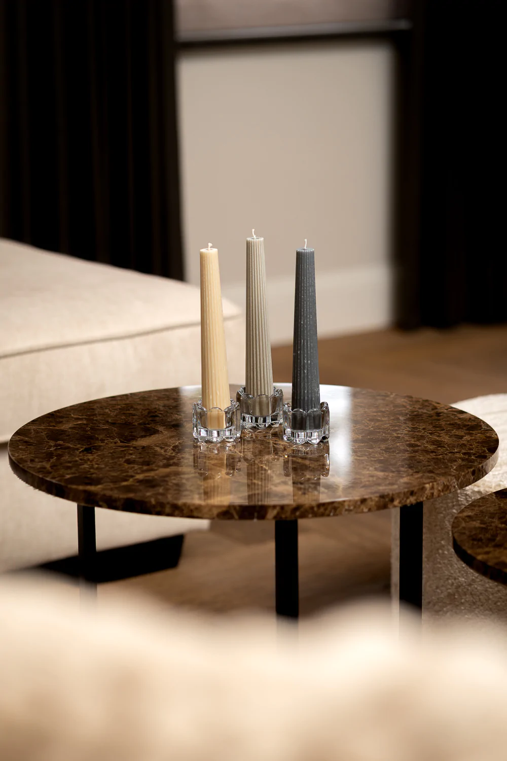 Elke Boreali kaars wordt met de hand gegoten in Zweden door vakmensen die de kunst van het kaarsen maken tot in de puntjes beheersen. Wij kiezen onvoorwaardelijk voor pure stearine. Dit zorgt voor een prachtige, rustige vlam zonder roet, wat wel zo fijn is voor de kleding van jullie gasten en de bloemstukken op tafel. Of jullie nu kiezen voor onze verfijnde dinerkaarsen in aardse tinten of voor moderne vormen zoals de kegel of vierkante kaars: ze blijven de hele dag kaarsrecht staan, ook als de zon volop schijnt.