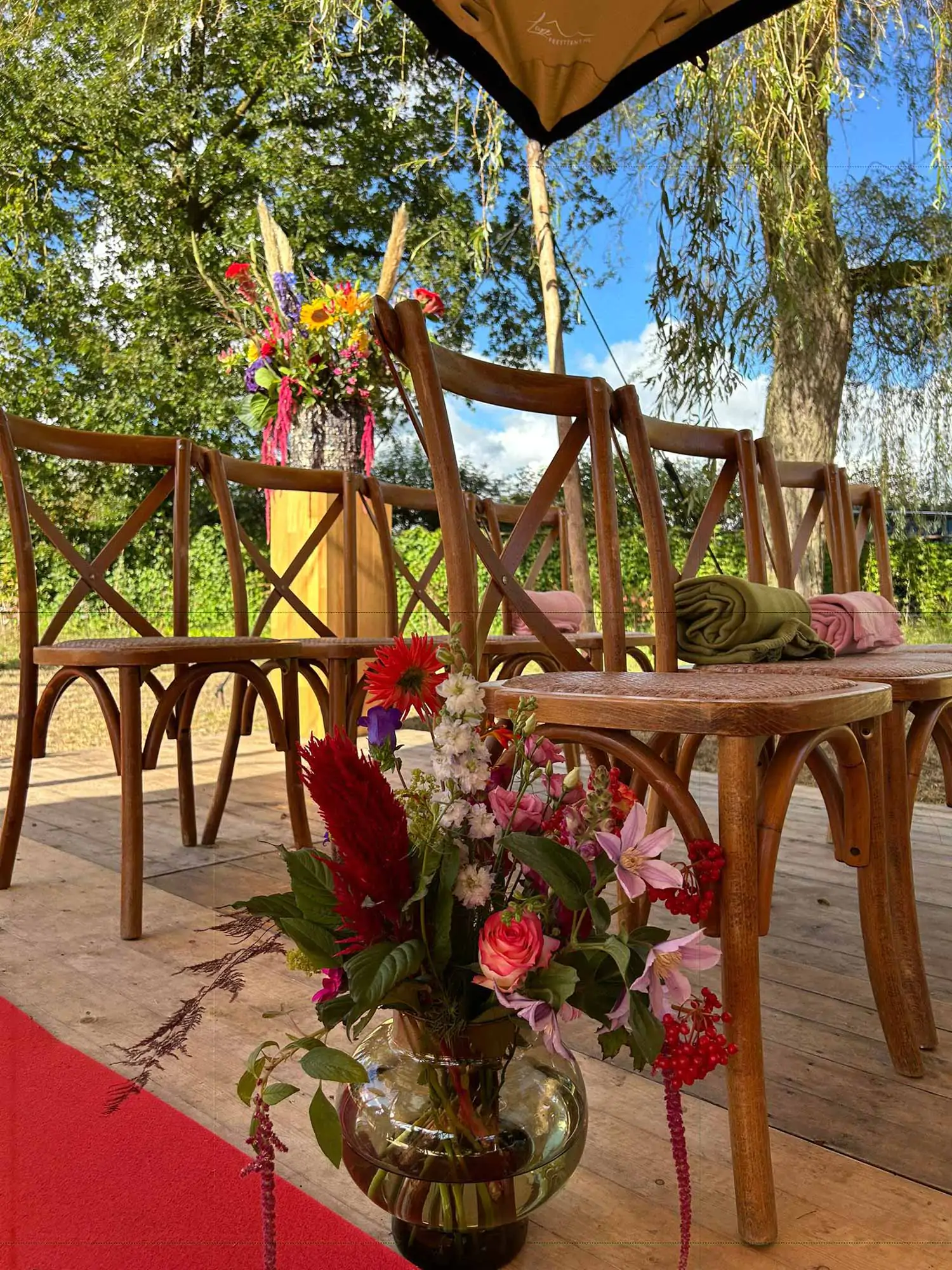 Met mooi weer heeft u de mogelijkheid om te trouwen in de tuin van Jan en Ellen. Witte stoeltjes, mooie bloemen, de zon en twee geliefden. We laten jullie de dag beleven als het mooiste sprookje. Jan en Ellen is door de Gemeente Oisterwijk benoemd tot officiële trouw locatie. We zijn enorm trots op het feit dat geliefde elkaar het ja-woord bij Jan en Ellen kunnen geven.