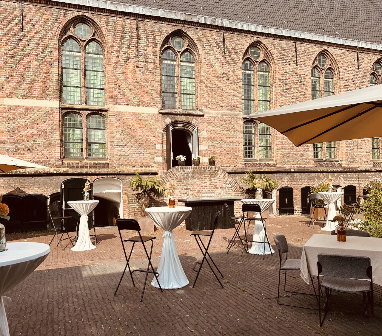 Onze besloten binnentuin is een idyllische plek waar jullie trouwdag tot leven komt. Hier kunnen jullie samen met jullie gasten genieten van een gezellige borrel en zelfs romantisch deelnemen aan een silent disco. Laat de magie van onze stadstuin jullie liefde omhullen. 🌿 🥂💃🕺