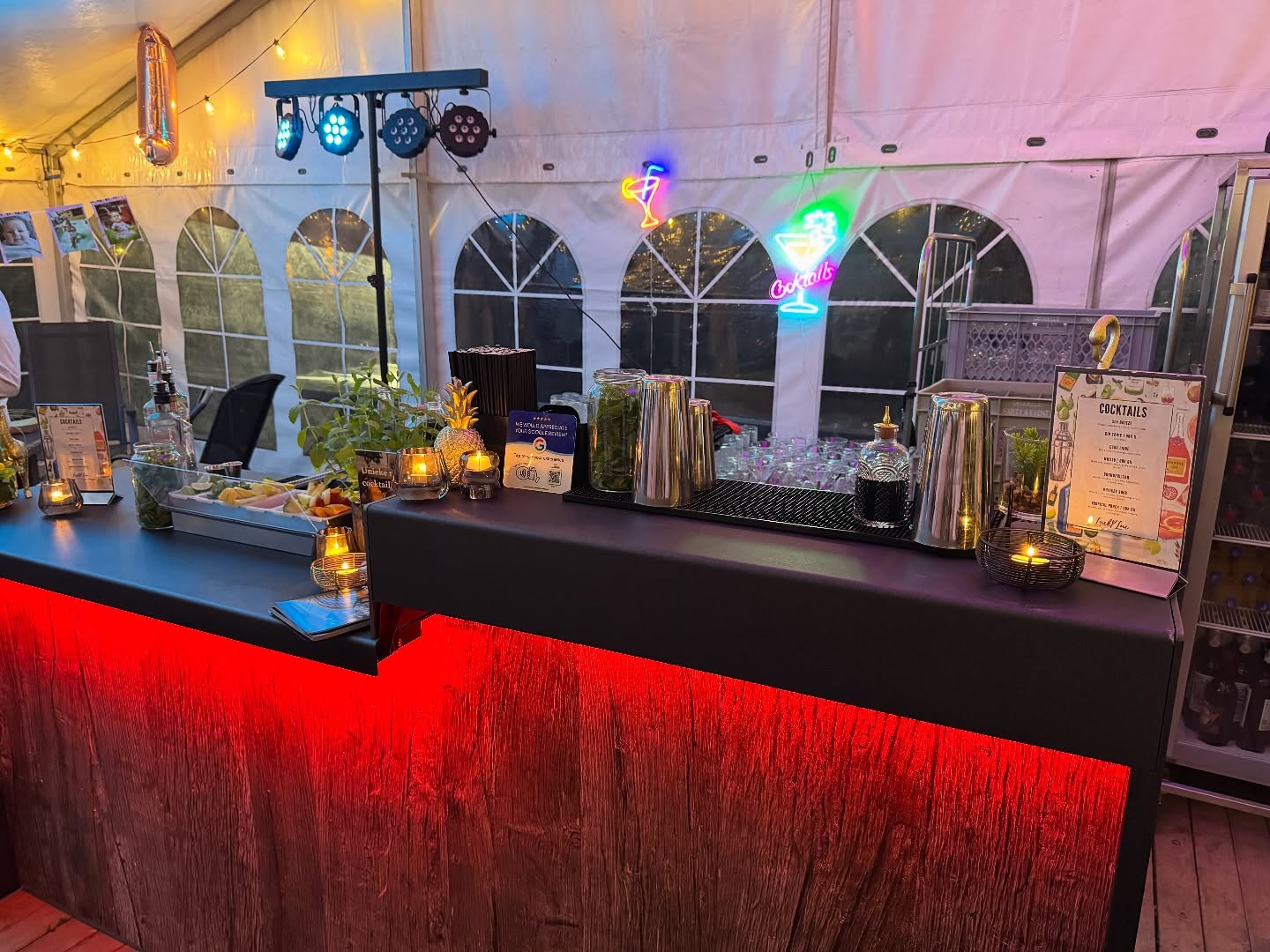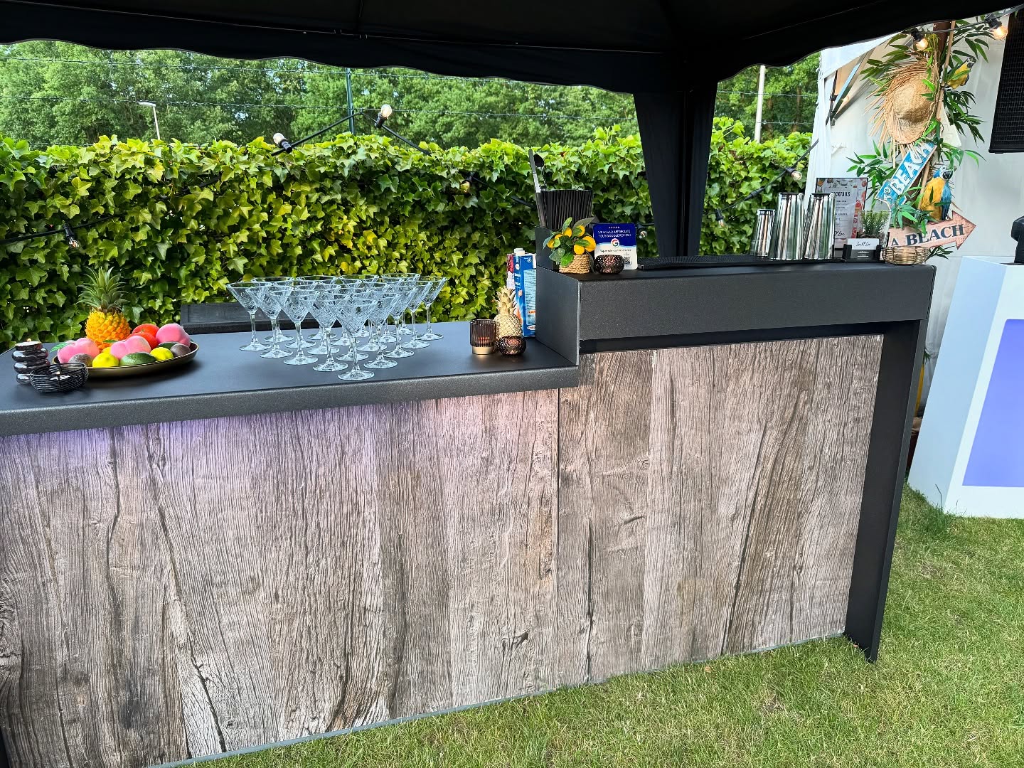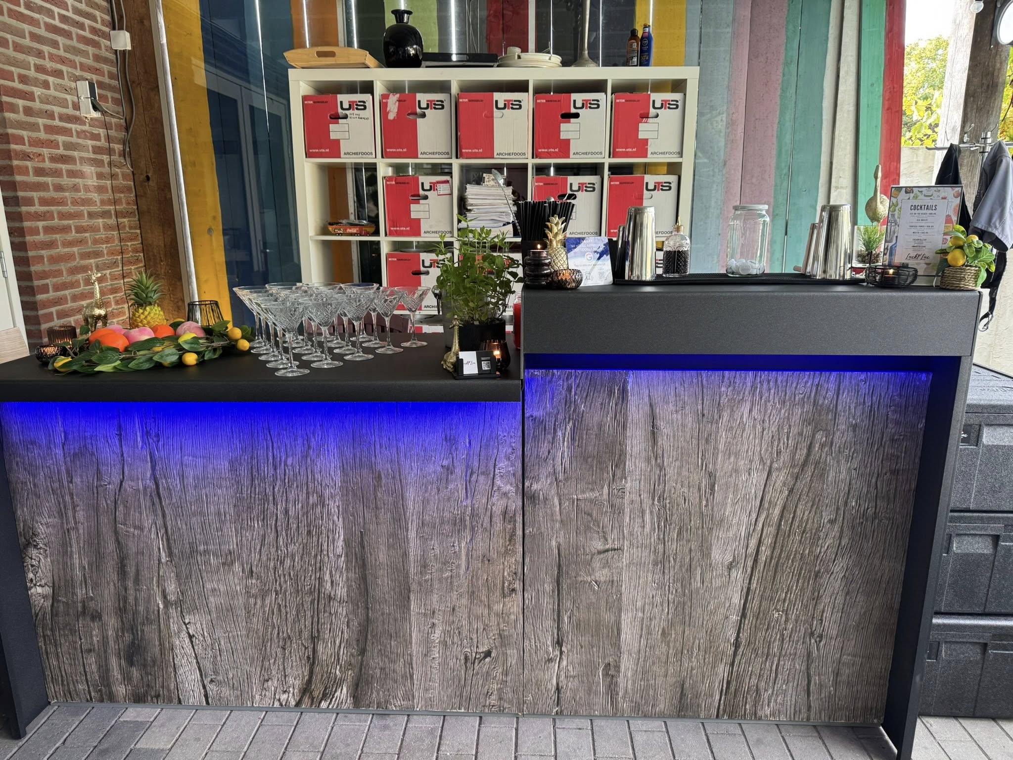 Alles wordt volledig verzorgd: van bar en materialen tot ijs, garnering en service. Zo kunnen jullie ontspannen genieten terwijl alles achter de schermen perfect geregeld is.