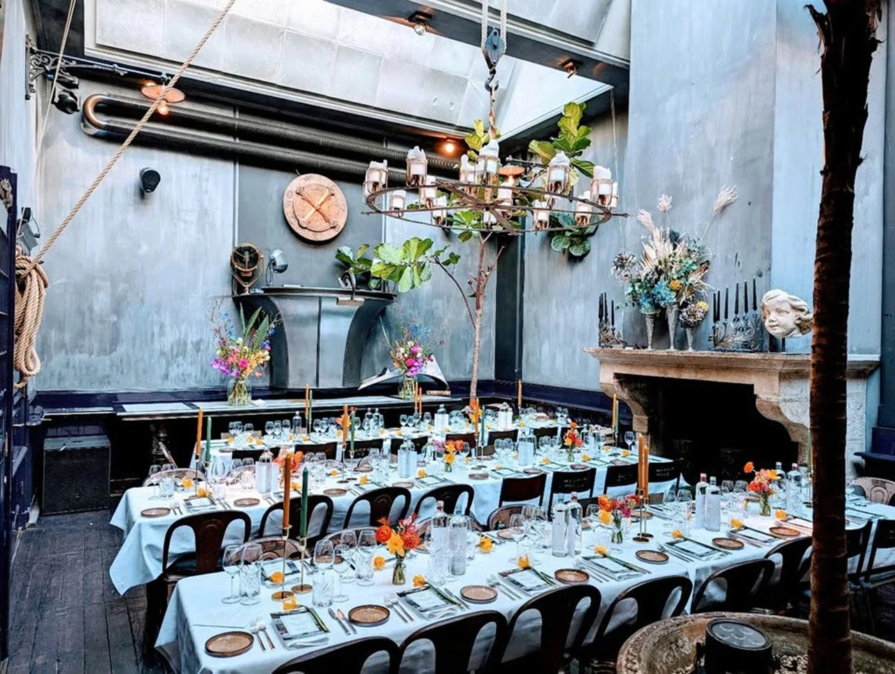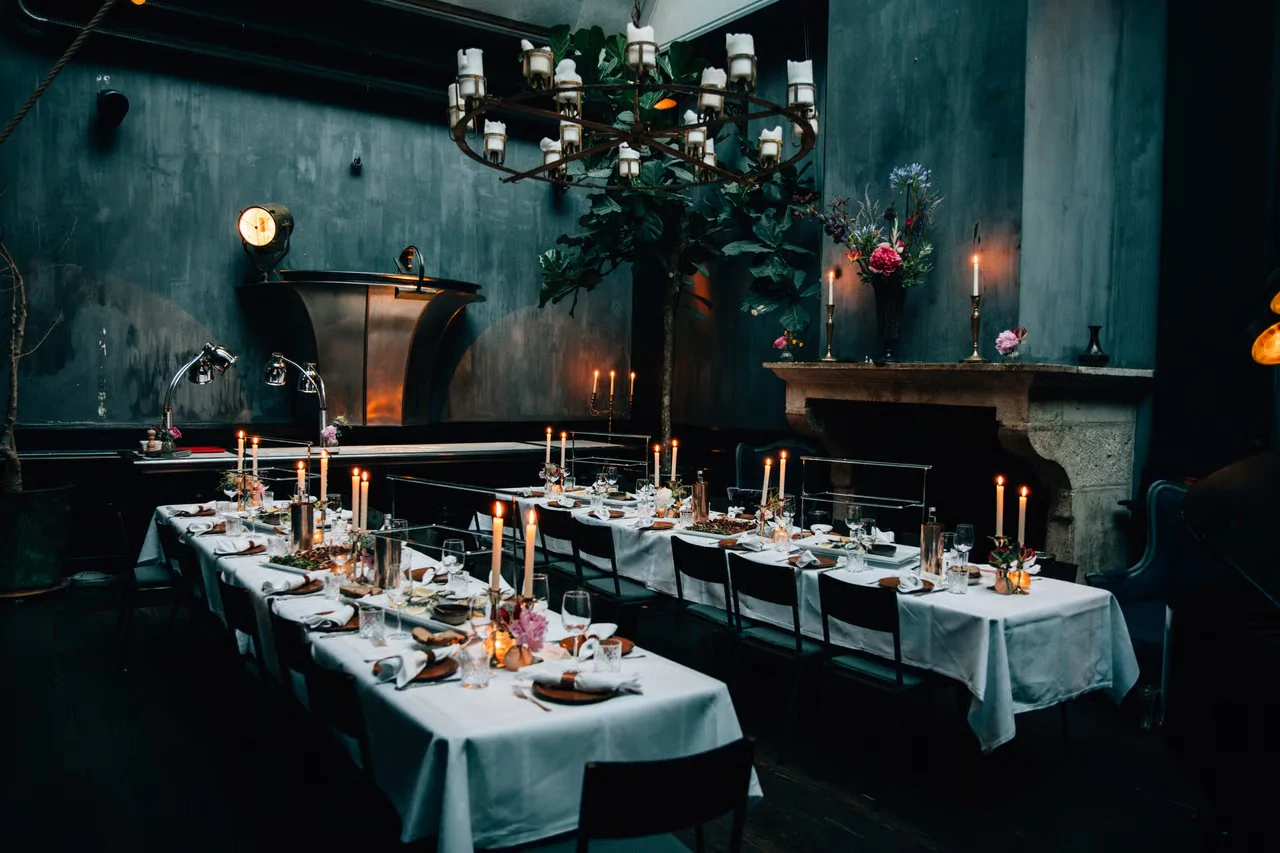 Mayer Manor is erkend als officiële trouwlocatie van de gemeente Amsterdam en biedt ruimte aan gezelschappen tot 120 personen. Interieur en beleving Het interieur is door Private Mansions vormgegeven als een theatraal decor waarin Art Deco, industrieel, barok en steampunk naast elkaar bestaan. Elke verdieping ontvouwt een nieuw hoofdstuk. Op de begane grond liggen de Monsterzaal en de Nico Mayer Bibliotheek, twee weelderig ingerichte ruimtes omringd door imposante planten en unieke objecten. In de Monsterzaal staat een antieke Erard-vleugel die de ruimte een extra laag van grandeur geeft. Hier vinden recepties, diners en performances plaats: sit-down tot 50 gasten, walking dinner tot 120. Beneden ligt The Cellar of Theatrical Wonders, een gerestaureerd overblijfsel van het oorspronkelijke convent, ouder dan de tabakshistorie van de straat. Hier bevindt zich ook de Barbershop: een speakeasy cocktailbar verscholen achter een vintage façade. De danszaal in Art Deco-stijl, met eigen DJ-booth en cocktailbar, vormt het hart van het feest. Afhankelijk van de situatie kan er tot 01:00 of 03:00 uur gevierd worden. Naast Mayer Manor: Maison de Curiosités Op Nes 120, direct naast Mayer Manor (Nes 116–118), ligt Maison de Curiosités, de tweede Private Mansion. Afhankelijk van de omvang en opzet van jullie bruiloft kunnen beide panden gecombineerd worden tot één groot, doorlopend decor.