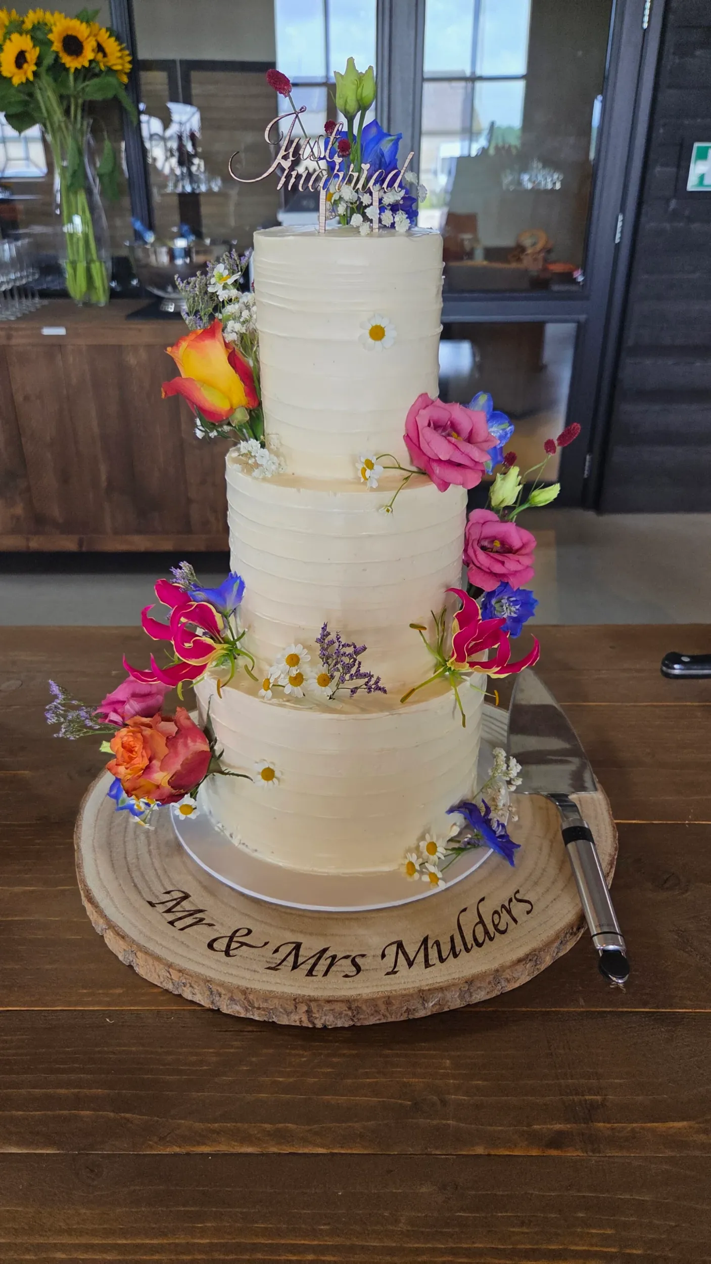 Wat een prachtige taart heeft ze gemaakt voor onze bruiloft! En hij smaakte heerlijk! Alles was bespreekbaar en niets was te gek, ook qua smaken! De service was ook top, ze kwam het op de locatie brengen en zorgde dat het er tip top uit zag! Nogmaals hartstikke bedankt, wij hebben genoten! 🥰