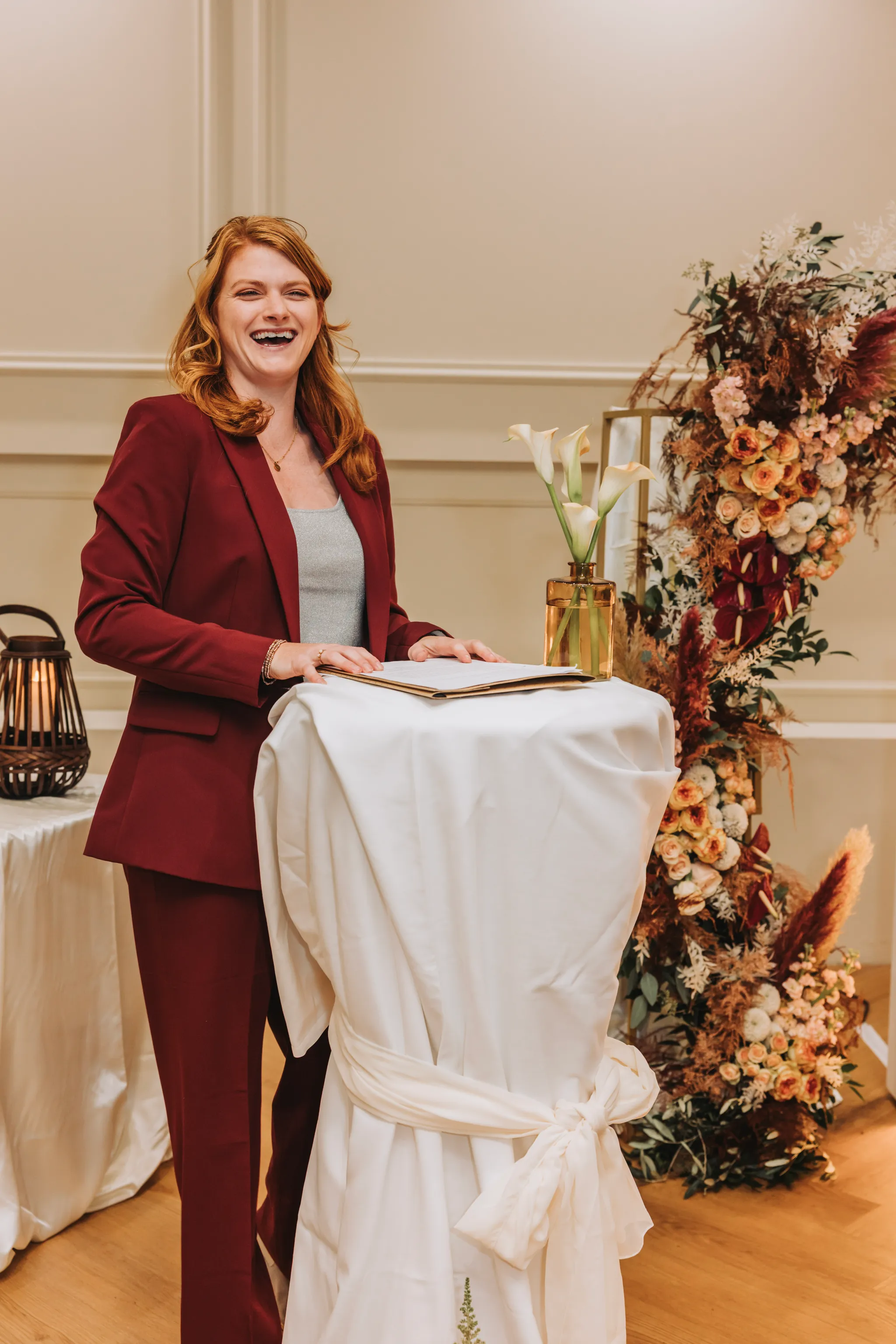 Ik combineer enthousiasme, energie en overzicht tot één vrolijk geheel. Ik help jullie rustig toeleven naar de dag, zodat de ceremonie soepel verloopt en alle ruimte biedt voor spontaniteit, warmte en plezier. Een moment dat klopt – van begin tot eind.