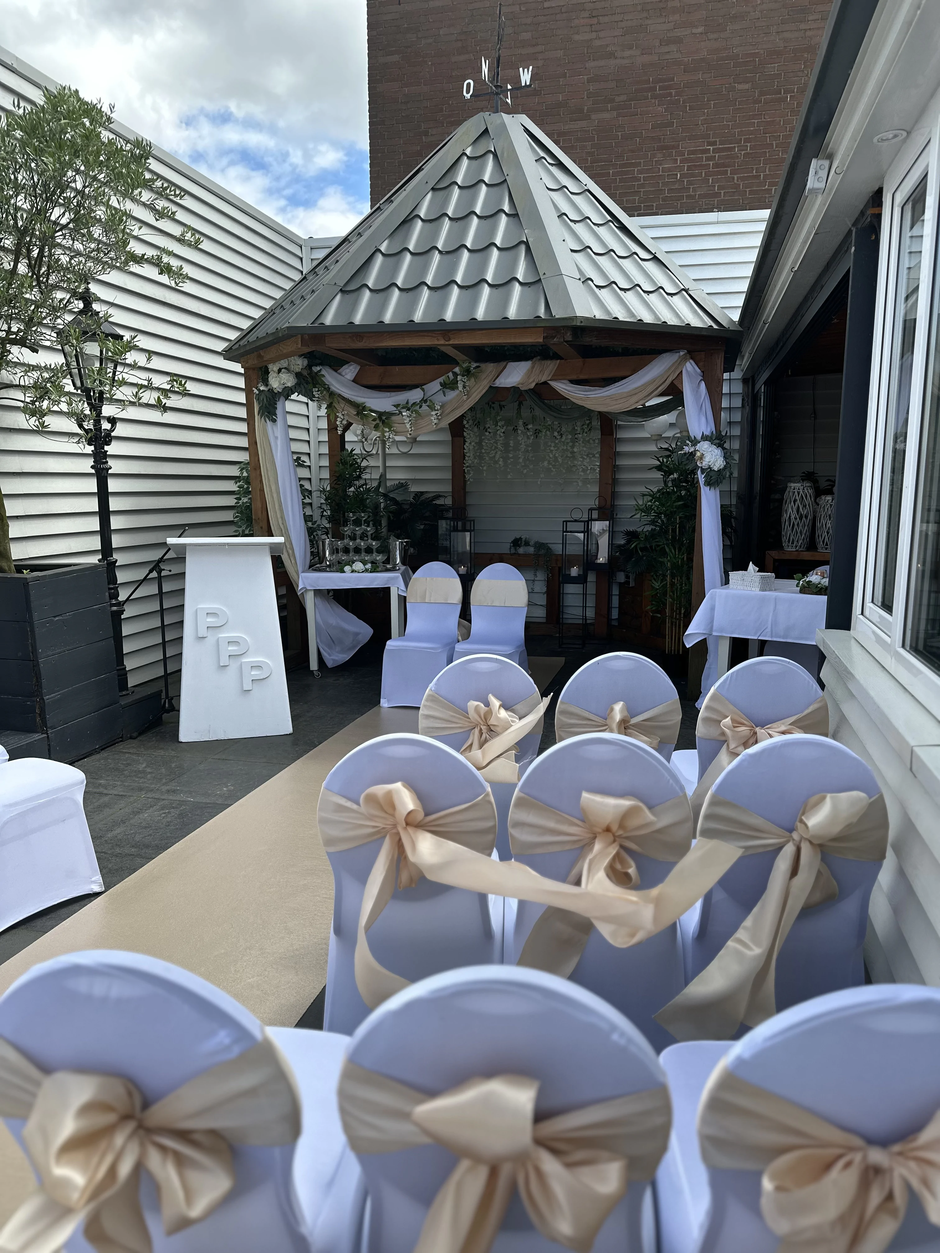 Als je een trouwfeest wil organiseren Je wordt hier super fijn geholpen, de eigenaar denk zelf ook mee voor jouw trouwfeest. Je kan alle kanten op gaan ze zijn zo relaxed. De versiering is aanwezig bijv voor de tafels en stoelen Ik zeg laat het feestje maar komen!!