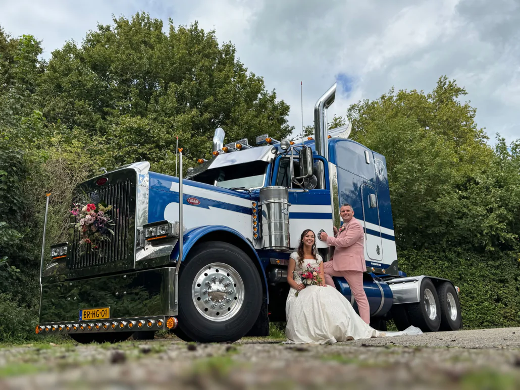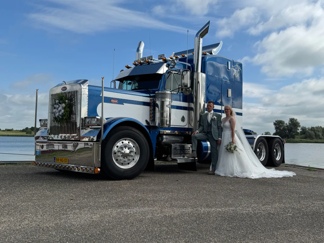 Als truckerszoon van kinds af aan altijd al willen trouwen met een Amerikaanse truck. zo gezegd zo gedaan, na wat telefonisch contact met Wim werd de verhuur vast gelegd voor onze grote dag. Niemand wist er van af. In alle vroegte hebben we afgesproken voor de nodige instructies 2 uur later het vrouwtje verrast met de showtruck. Het was het hoogtepunt van onze grote dag. Kortom met deze peterbilt ben je een echte eindbaas !! Nogmaals bedankt Niels & Linda.