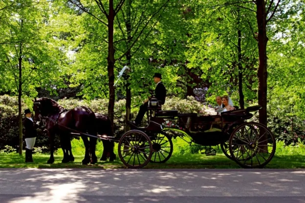 Een trouwkoets geeft trouwerijen een bijzondere en romantische uitstraling. De lederen kap van de Victoria biedt bescherming bij felle zon en werkt als een elegante parasol voor het bruidspaar. Hierdoor kunt u comfortabel en stijlvol naar het gemeentehuis of de trouwlocatie rijden. Of u nu kiest voor de ruime Glaslandauer of de romantische Victoria, een rit in een trouwkoets zorgt voor een unieke ervaring tijdens trouwerijen. Het geluid van de paardenhoeven, de klassieke uitstraling van het rijtuig en de romantische sfeer maken uw trouwdag compleet.
