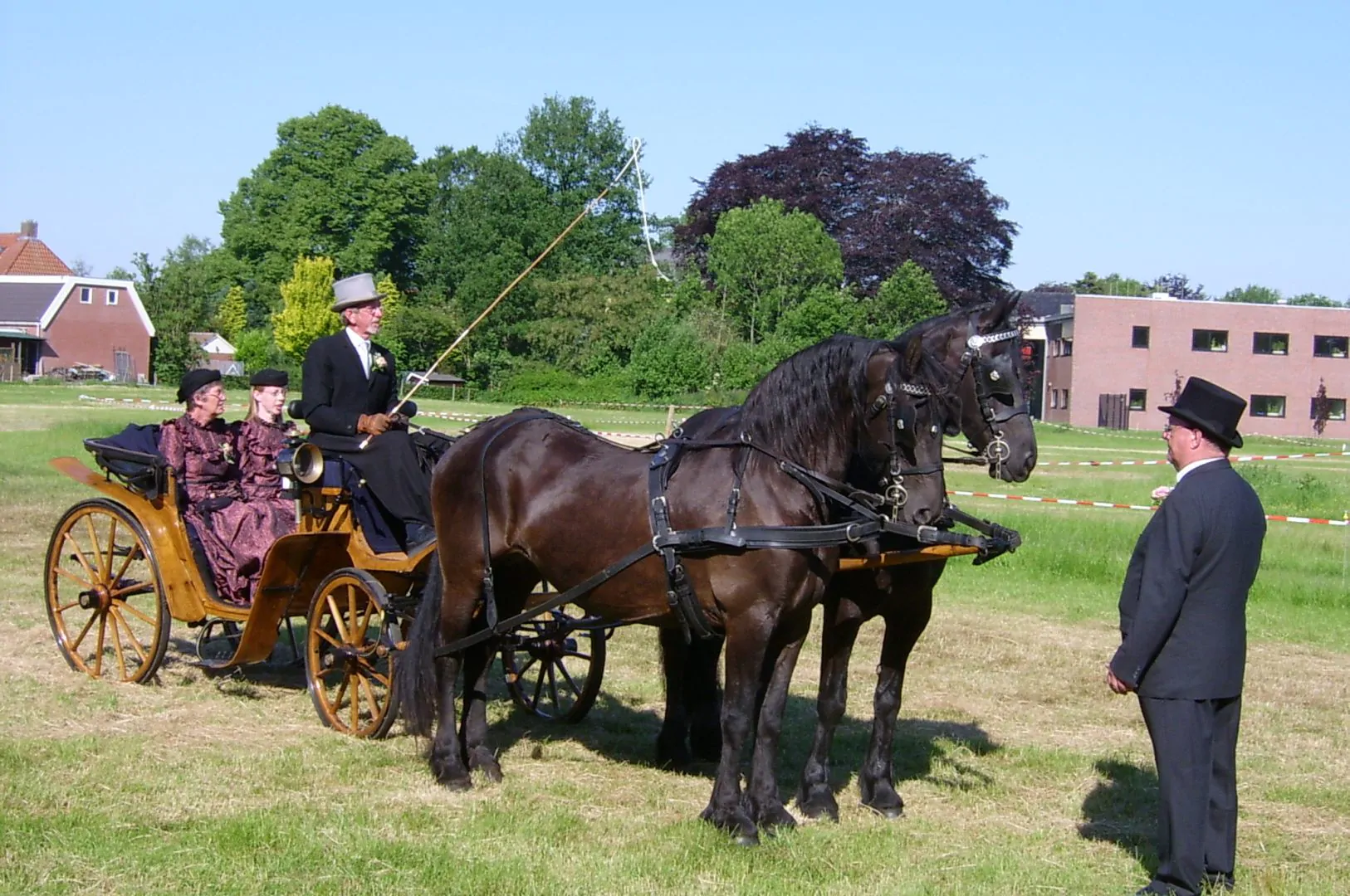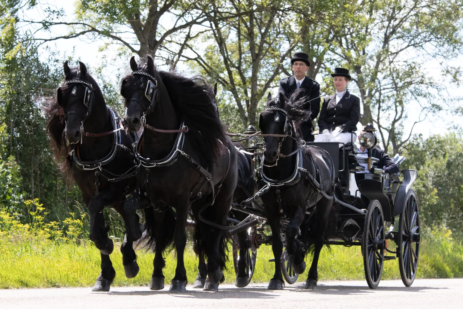 Prachtig Gewoon geen woorden voor Wij als homo stel staan liever niet in de belangstelling Maar met 2 van die mooie zwarte Friese hengsten voor de glaslandouwer door het centrum van Leeuwarden om elkaar het ja woord te geven was een hele belevenis bedankt Stal houderij de fiifhoeke