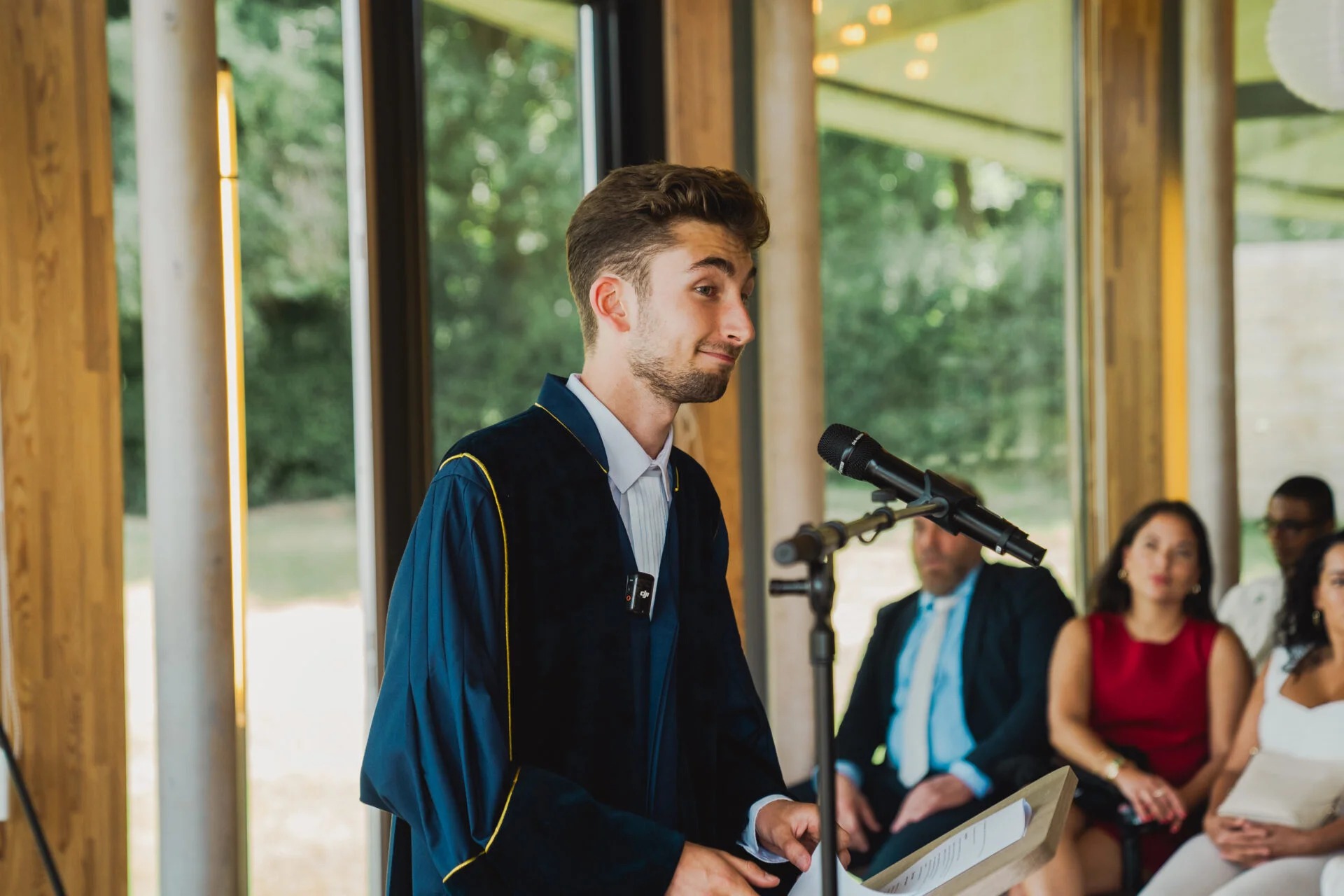 Voor ons was het extra bijzonder dat Samuel onze trouwambtenaar was, want we kennen hem al van jongs af aan — Samuel zat vroeger niet alleen bij onze dochter in de klas maar waren ook goed bevriend, zo speciaal. Het was dan ook geen verrassing dat hij deze taak met dezelfde oprechte gedrevenheid en warmte vervulde die we altijd al in hem hebben gezien. Zijn toespraak was weloverwogen, persoonlijk en precies in balans: warm, oprecht en met een vleugje humor. Samuel wist ons verhaal zo te vertellen dat niet alleen wij, maar ook onze gasten geraakt werden. Het voelde alsof iemand die ons écht kent ons huwelijk verbond, en dat maakte het onvergetelijk. Kortom: een geweldige trouwambtenaar en een absolute aanrader voor iedereen die een ceremonie wil die recht uit het hart komt.