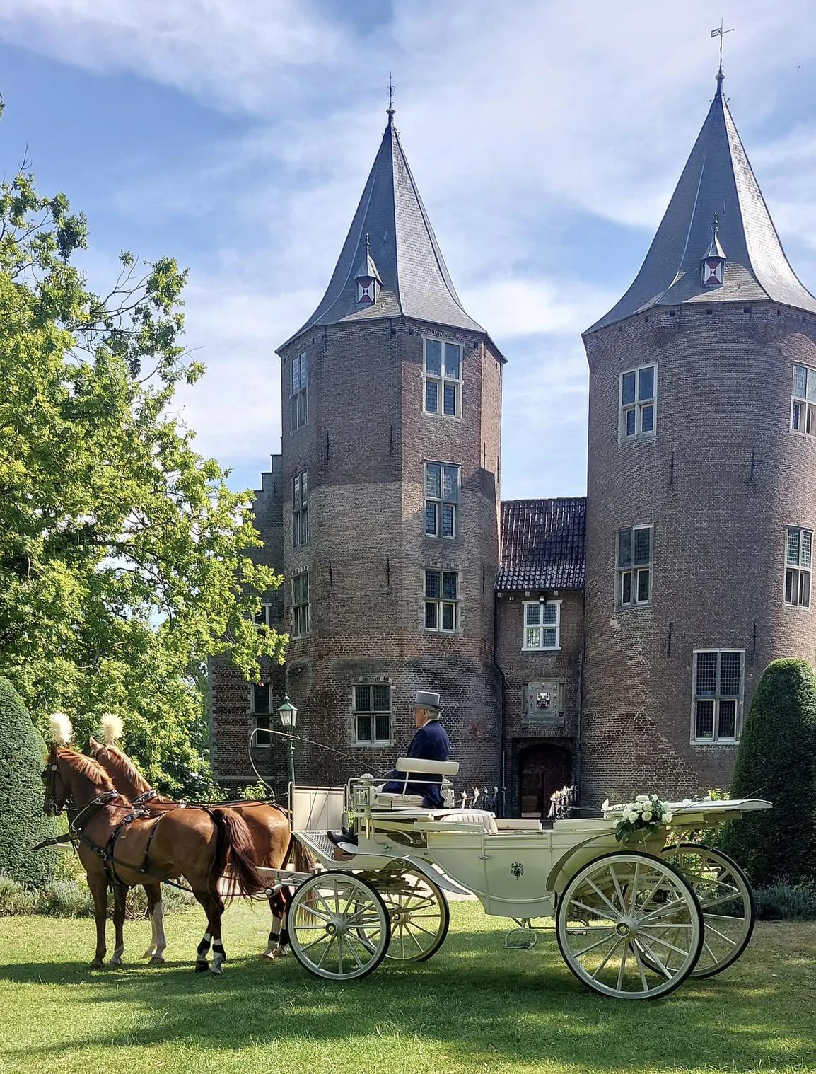 Die dag vraagt om passend en stijlvol vervoer waarbij alles tot in de puntjes is verzorgd. Een prachtig rijtuig, met schitterende paarden en tuigage, en een ervaren perfect geklede koetsier en palfrenier mogen daar eigenlijk niet aan ontbreken.