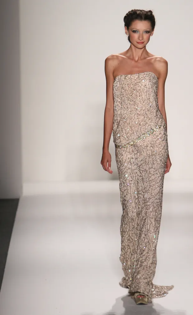 Een glitterjurk met split is echt een topkeuze! Ideaal voor een bruiloft of gala, omdat je glamour mixt met een beetje sexy elegantie. © FashionStock.com | Shutterstock·com | Venexiana fashion Glitterjurk met split dragen op een bruiloft De sp...