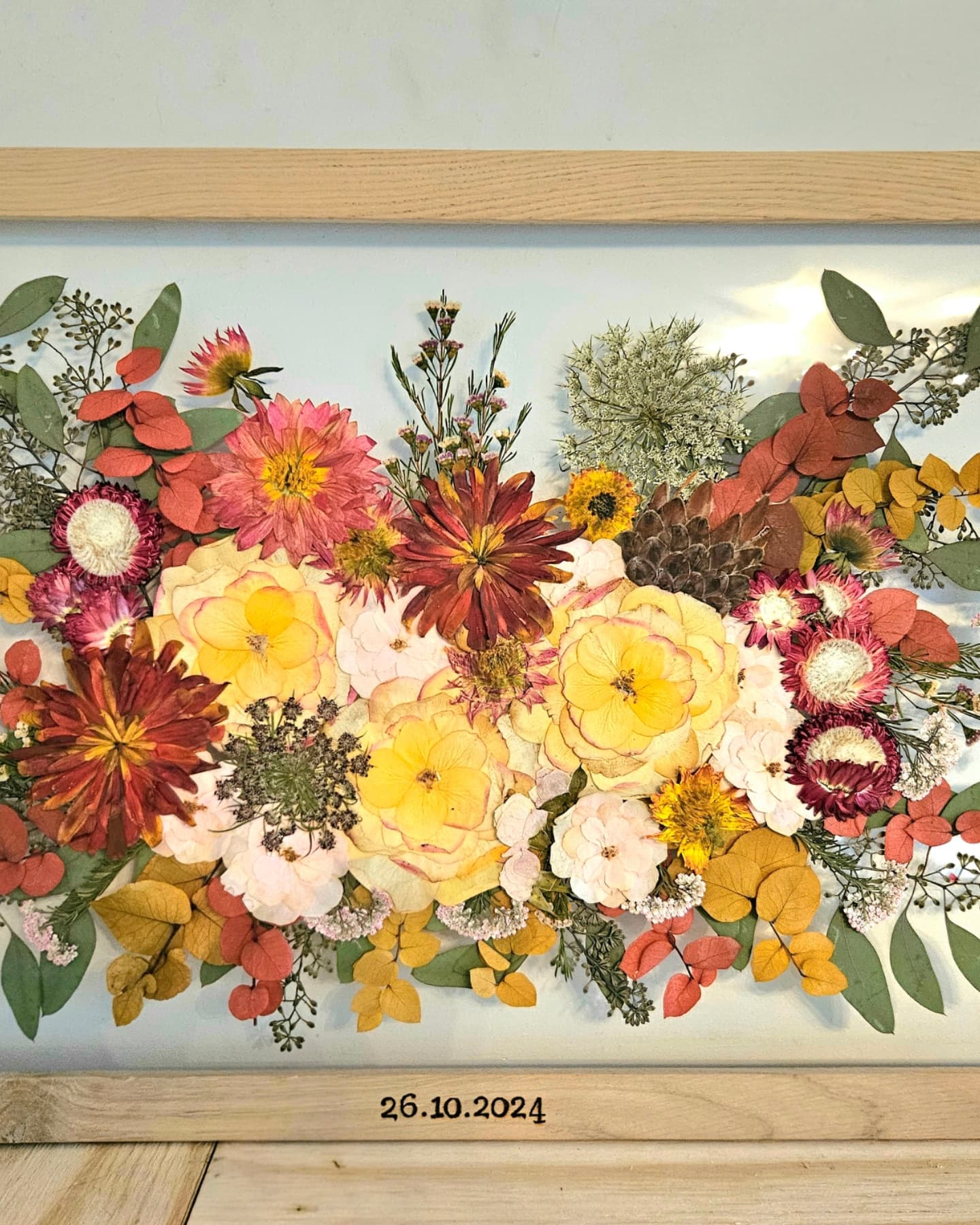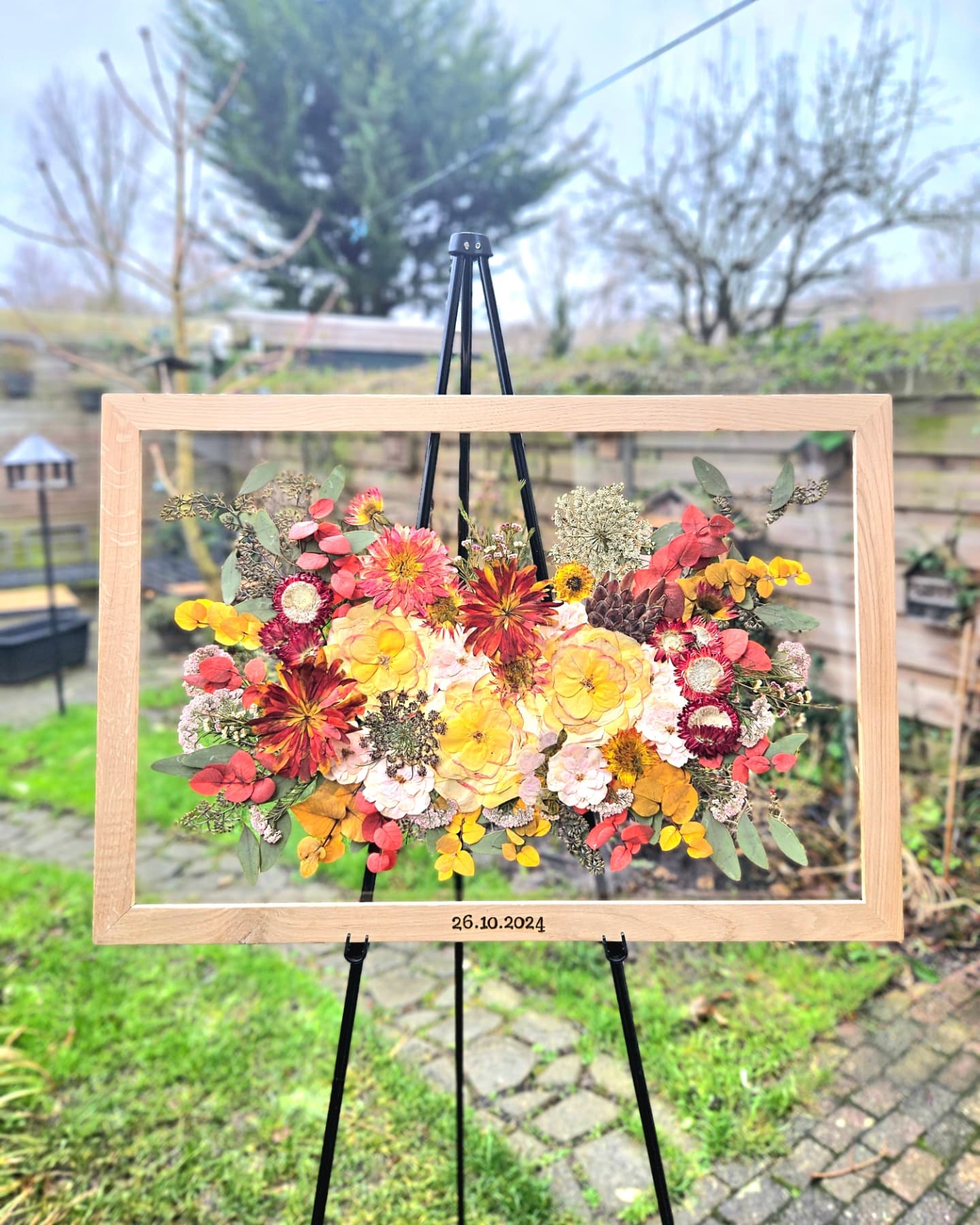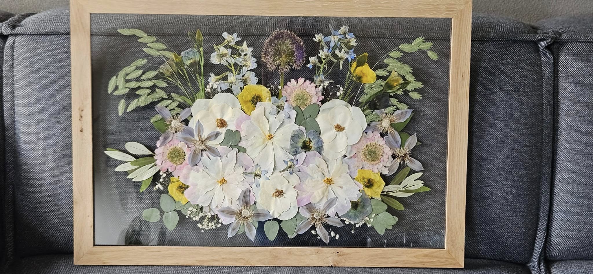 Wil je jouw trouwboeket laten drogen en vereeuwigen in een uniek kunstwerk? Het drogen van een trouwboeket is een prachtige manier om de emoties, kleuren en betekenis van jullie grote dag te bewaren. Met zorg, aandacht en liefde wordt jouw boeket omgetoverd tot een persoonlijk herinneringsstuk voor aan de muur, volledig afgestemd op jouw wensen en interieur.