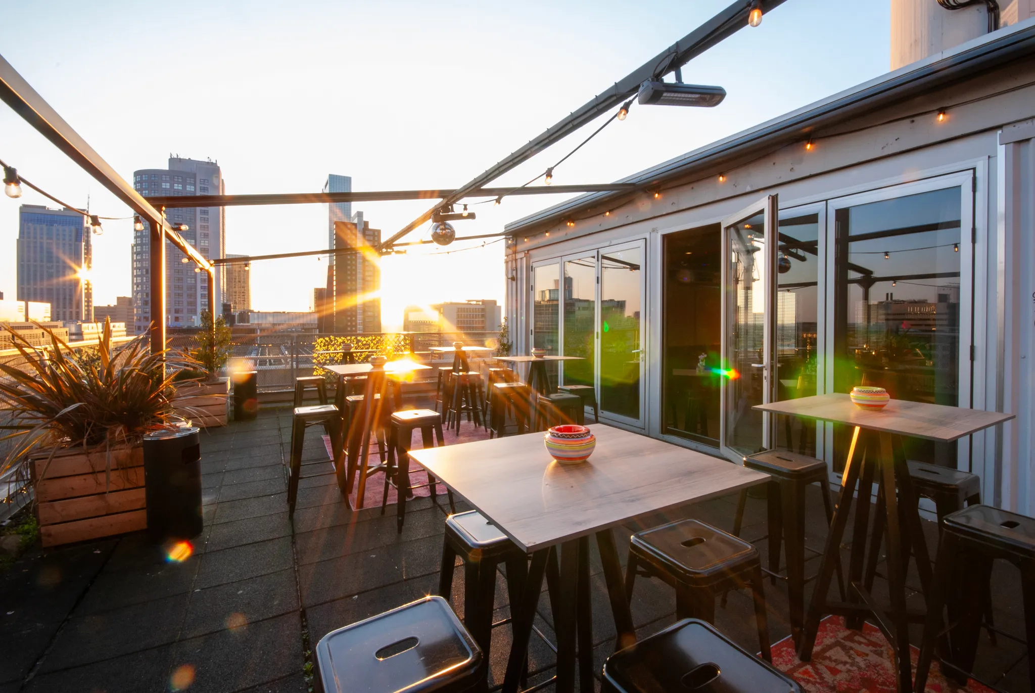 Onze locatie is speciaal ingericht voor het vieren van de bruiloft zelf. De Rooftop is niet geschikt voor het officiële huwelijk of het ondertekenen van de huwelijksakte; het draait puur om jullie bruiloftsfeest en de sfeer die jullie willen creëren. We kunnen maximaal 180 gasten ontvangen op onze locatie.