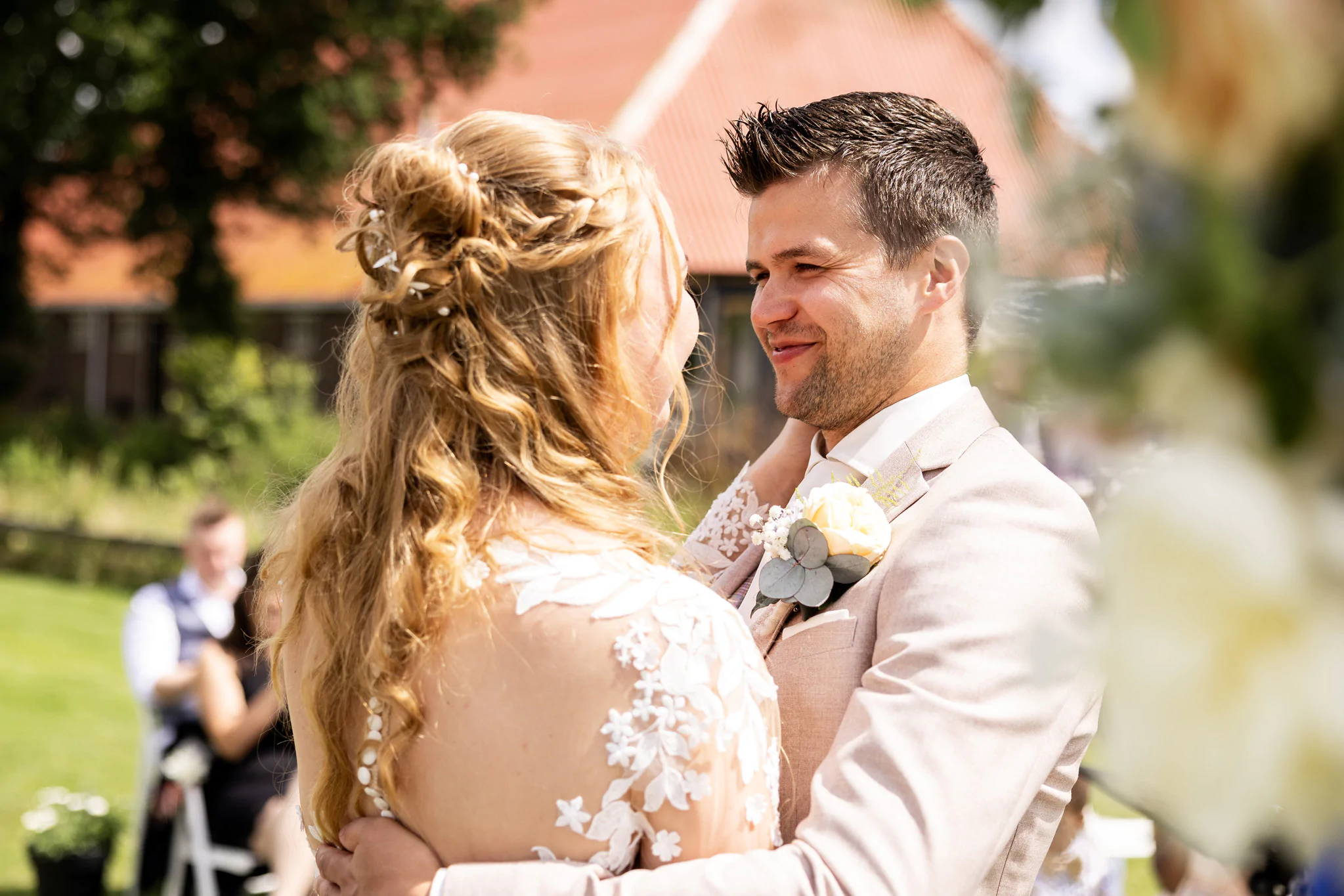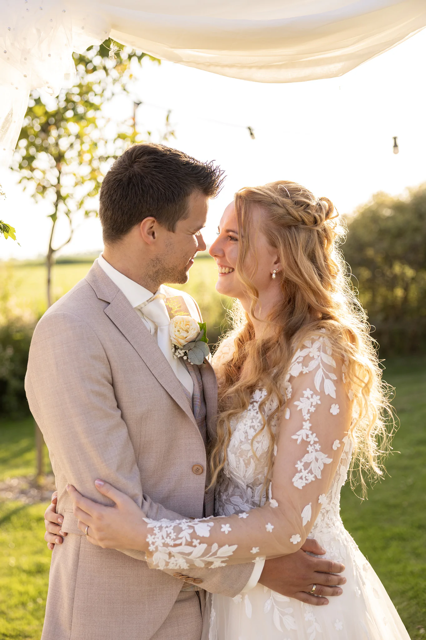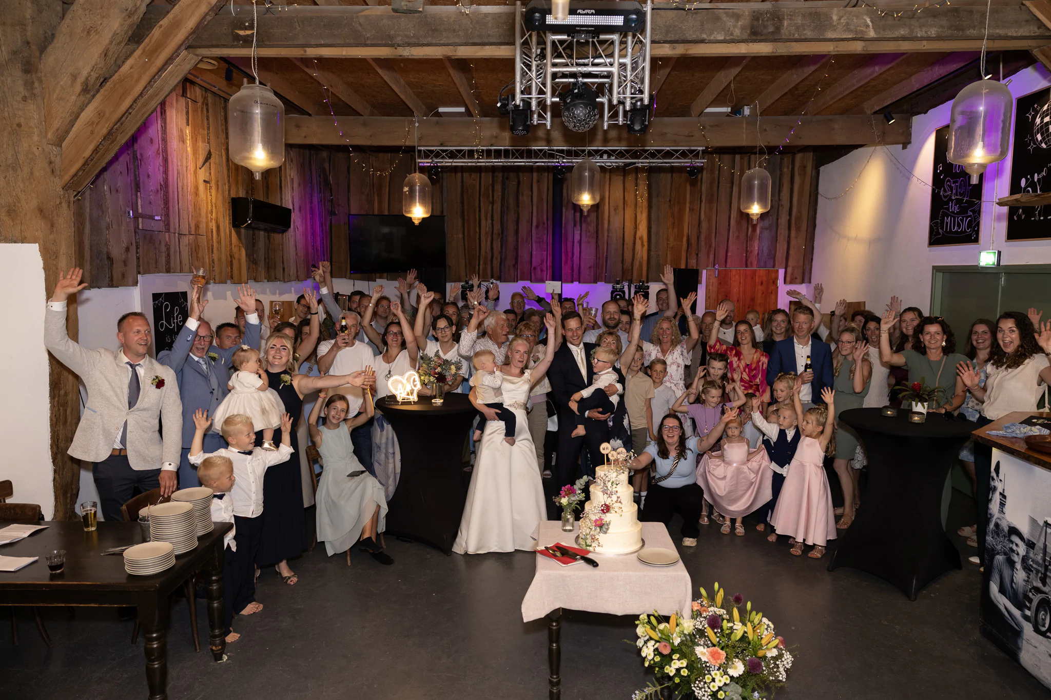 Buiten trouwen kan in onze grote tuin of onder de open hooischuur — beide prachtige plekken die altijd voor fotogenieke momenten zorgen. Binnen beschikken we over meerdere sfeervolle ruimtes, geschikt voor zowel intieme ceremonies als grote gezelschappen. Kom vooral eens langs om de ruimtes zelf te ervaren en de sfeer te proeven.