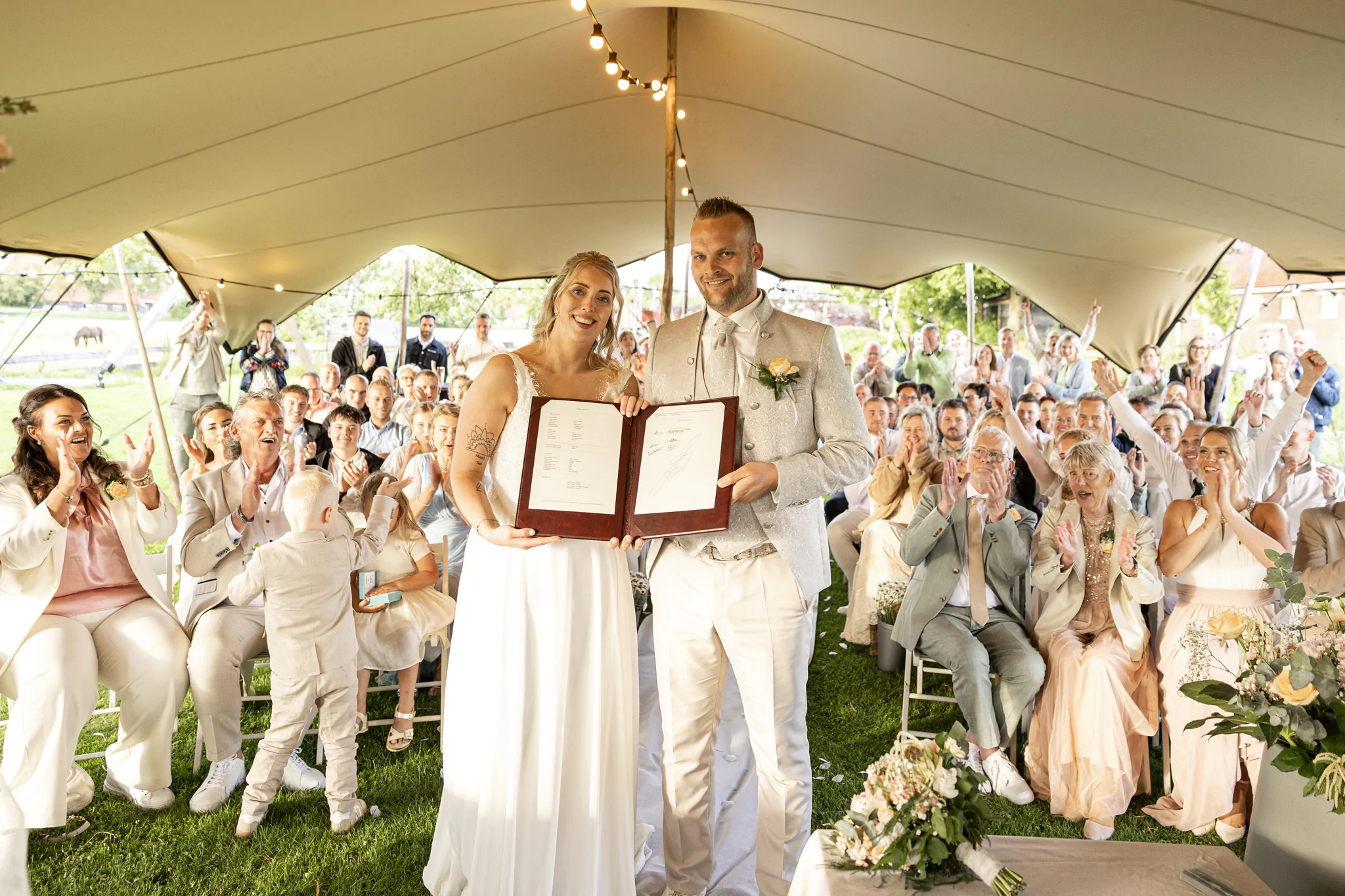 Elke bruiloft bij De Wartenster wordt volledig op maat samengesteld. In overleg is vrijwel alles mogelijk. Willen jullie zelf een band of muzikant regelen, of laten jullie dat liever aan ons over? Gaan jullie voor een traditioneel gastenboek, of juist voor een videozuil waarin gasten een persoonlijke boodschap kunnen inspreken? We bespreken jullie wensen tot in detail en maken vervolgens een passende offerte.