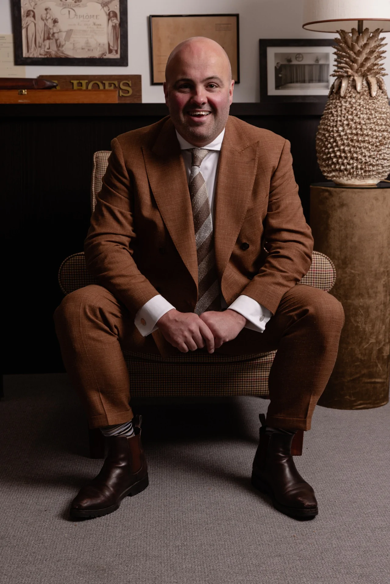Aangenaam, ik ben Leon van Hoes Tailors. Ik ben de derde generatie tailor bij ons familiebedrijf, en ook mijn vader staat nog steeds in de zaak en achter de naaimachine. Al sinds 1946 zijn wij gek op maatkleding, met als favoriet natuurlijk het trouwpak op maat! Samen met jou ontwerpen we graag een unieke look die helemaal bij jou past. Het kleermakersvak is zeldzaam, maar bij ons is het nog springlevend, met liefde voor detail en stijl. Wil je langs komen? Maak dan makkelijk en snel een afspraak in onze online agenda.