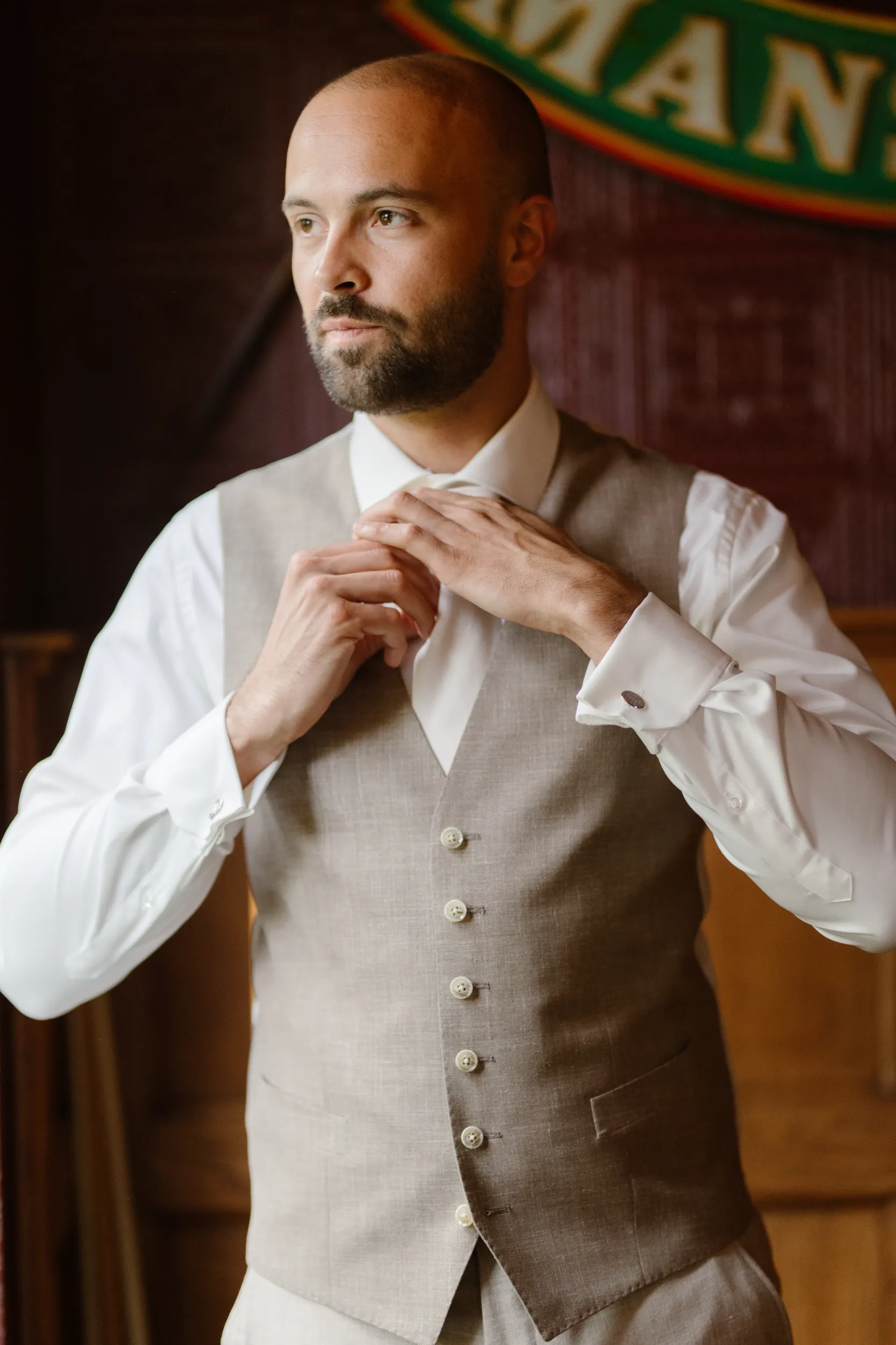 STAP 3 Ophalen en finishing touch: De laatste aanpassingen zijn gedaan in ons atelier en je trouwpak is klaar voor de grote dag. Onze tailors geven je nog een aantal handige tips, zodat jij er perfect uitziet op je bruiloft.
