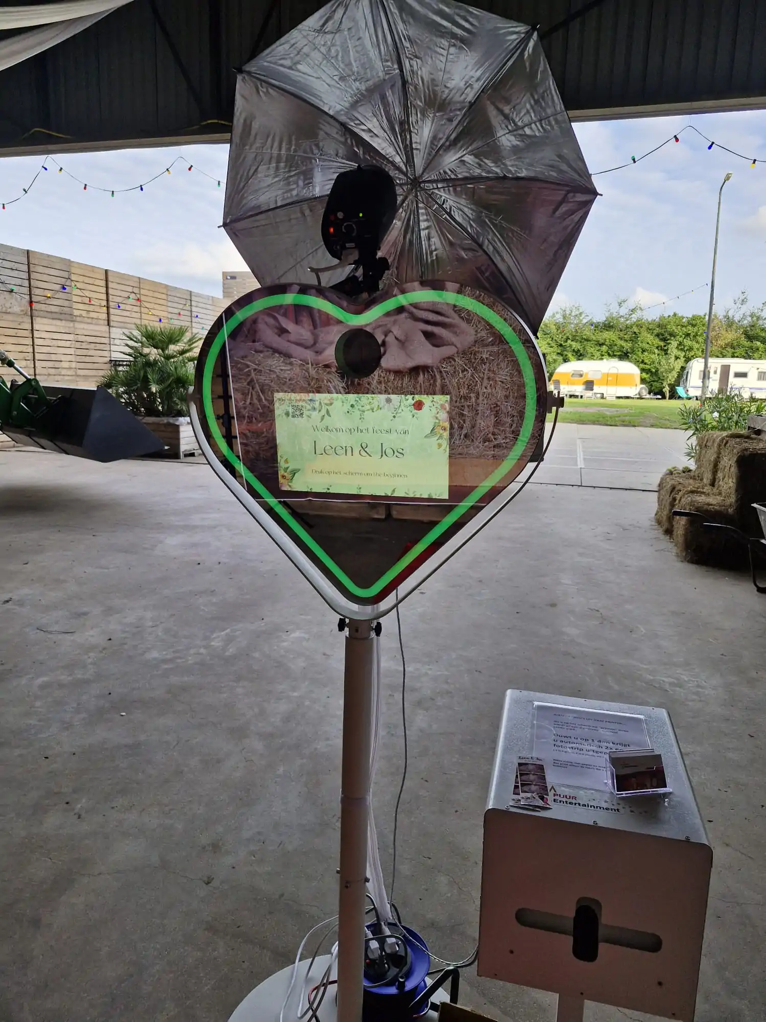Een photobooth op de bruiloft is niet alleen leuk, maar ook een blijvende herinnering voor jullie gasten. Wij plaatsen geen standaard hokje, maar een complete setting met 3D-decor, passende verlichting en indien gewenst muziek. Elk thema of elke stijl is mogelijk, van romantisch tot modern of vintage.