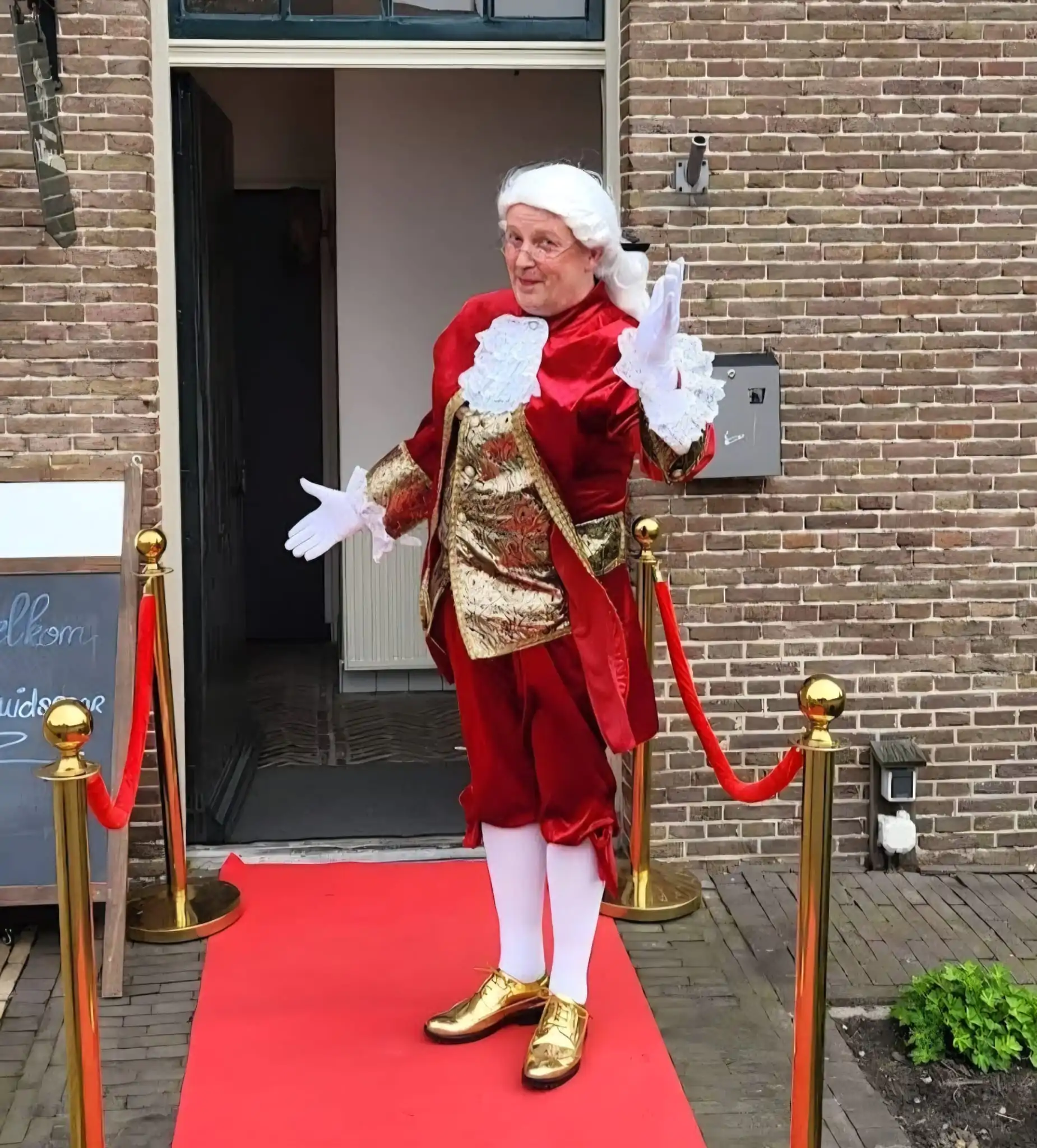 Voor wie echt iets bijzonders zoekt, is onze lakei een originele toevoeging aan de trouwdag. Hij kan gasten ontvangen, de huwelijksceremonie begeleiden, een welkomstwoord verzorgen of zelfs een humoristische speech houden. Alles gebeurt volledig in overleg en afgestemd op jullie wensen.
