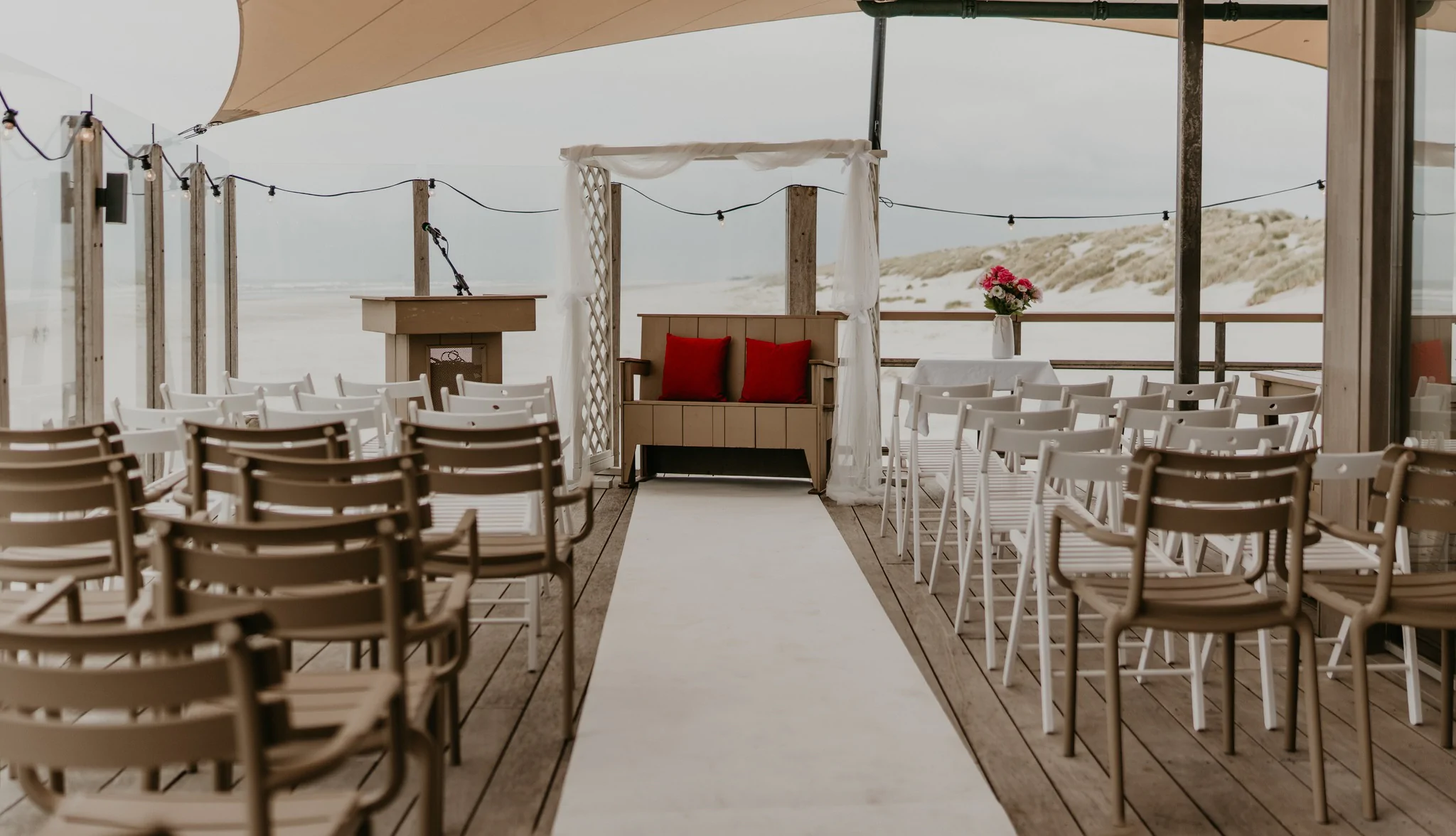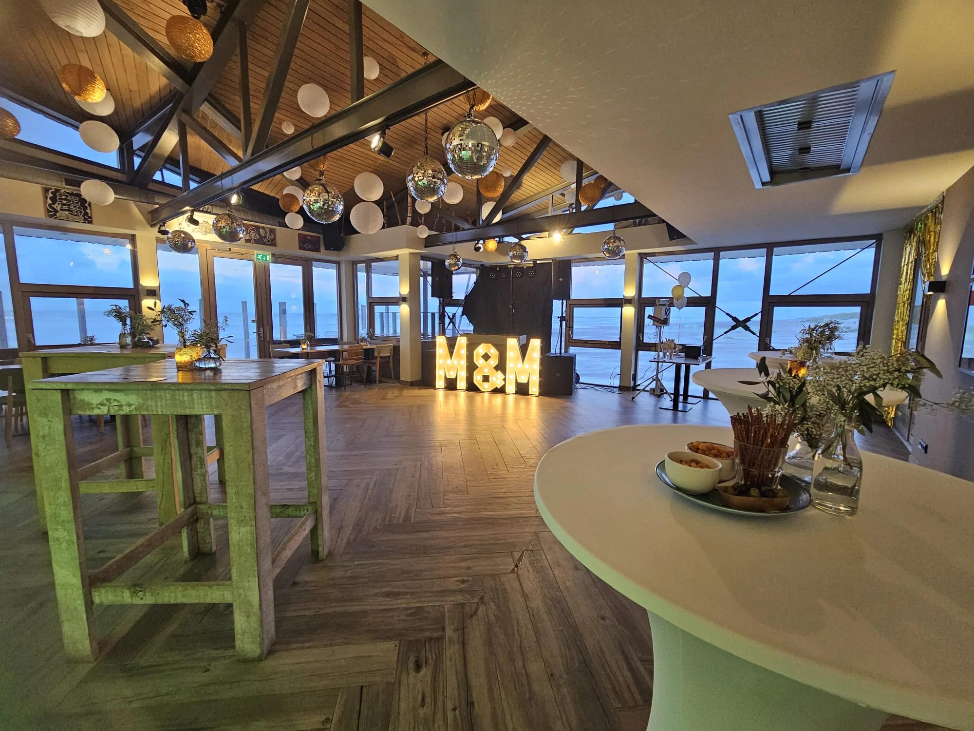 Strandpaviljoen Sjoerd is een officiële trouwlocatie op Ameland en beschikt over twee stijlvolle zalen met verschillende capaciteiten, waardoor alle soorten feesten mogelijk zijn. Of je nu droomt van een romantische strandbruiloft, een intiem familiefeest met de kleinkinderen, een zakelijke bijeenkomst, of een grandioos personeelsfeest: Sjoerd levert maatwerk en heeft de ervaring om elk event perfect te verzorgen.