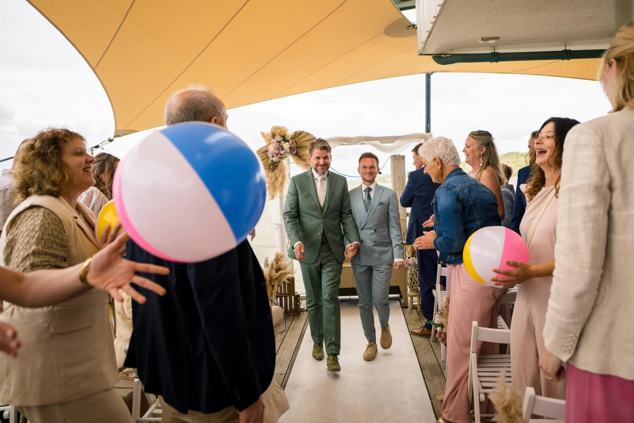 Op 30 juni jl. hebben wij onze bruiloft gevierd in Strandpaviljoen Sjoerd. Eerst een warm onthaal voor de gasten waarna wij aan kwamen rijden en vervolgens gehuwd werden. Hierna heerlijk genoten van koffie met taart en een verrukkelijke lunch! In eerste instantie was het de bedoeling om op het terras te trouwen, maar door de ervaring van het personeel van Sjoerd is dit op het laatste moment omgezet naar binnen trouwen in verband met de verwachte regen. Wat een top service en uitstekend meegedacht. Alle wensen voor de dag zijn vooraf bespreekbaar, waarbij het personeel van Sjoerd met je meedenkt, en wijzigingen zijn altijd mogelijk. We hebben onvergetelijke dag gehad op een pracht locatie!