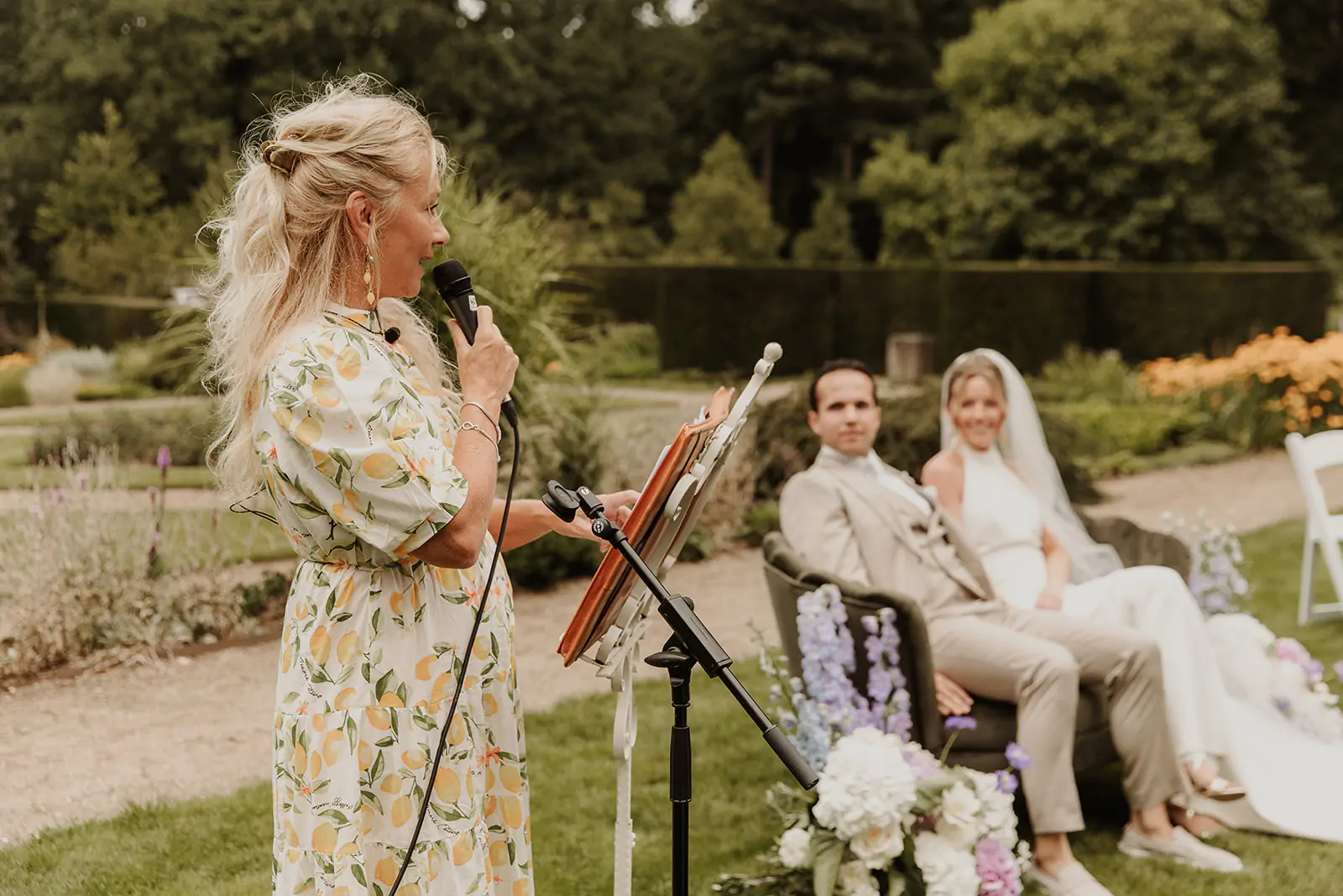 Hebben jullie al ideeën over hoe jullie de ceremonie graag zouden willen? Is er iemand die heel belangrijk voor jullie is? Op welke locatie gaat de bruiloft plaatsvinden? Waarom zijn jullie verliefd op elkaar geworden? Ik wil alles weten! Met jullie toestemming, neem ik ook contact op met familie en vrienden om echt te begrijpen wie jullie zijn. Zo wordt jullie ceremonie nog persoonlijker!